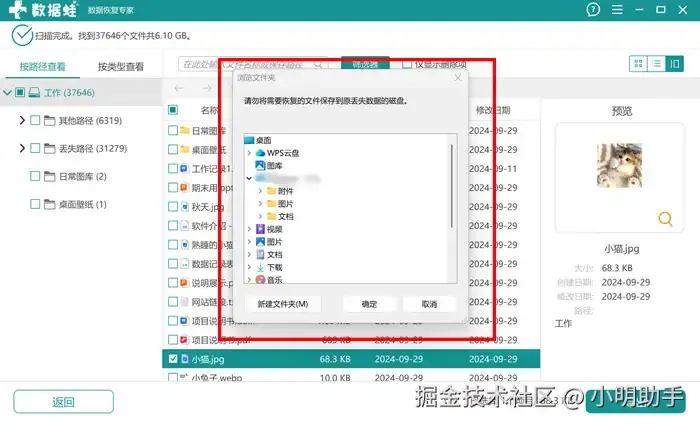 步骤3: 最后别忘了还有“浏览文件夹”,在上面需要用户选择好文件恢复后存放位置。