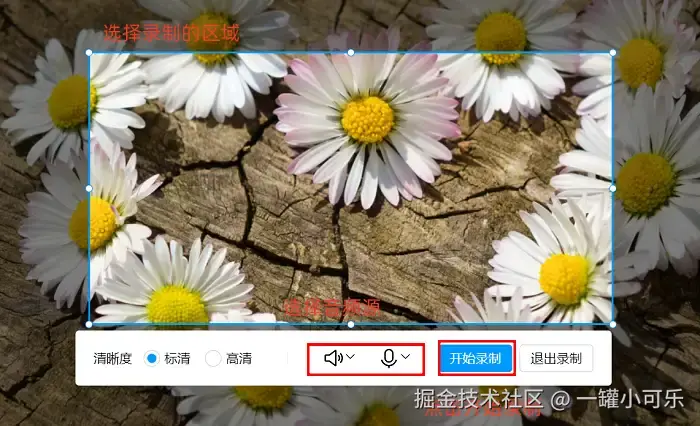步骤 2:接着需完成两项核心设置,首先是确定录制范围与音频源,通过拖动屏幕上的选框,选择需要捕捉的具体屏幕区域。同时在音频设置栏,根据需求勾选 “系统声音”(录制电脑内部音效)、“麦克风声音”(录制外部解说) 或两者皆选。如果你需要为录制内容添加专属标识,可以点击界面中的 “录制水印” 选项,自定义水印的样式(如文字、图片)、大小及在屏幕中的显示位置。所有参数设置完毕并确认无误后,点击界面中的 “REC” 按钮就可以了。