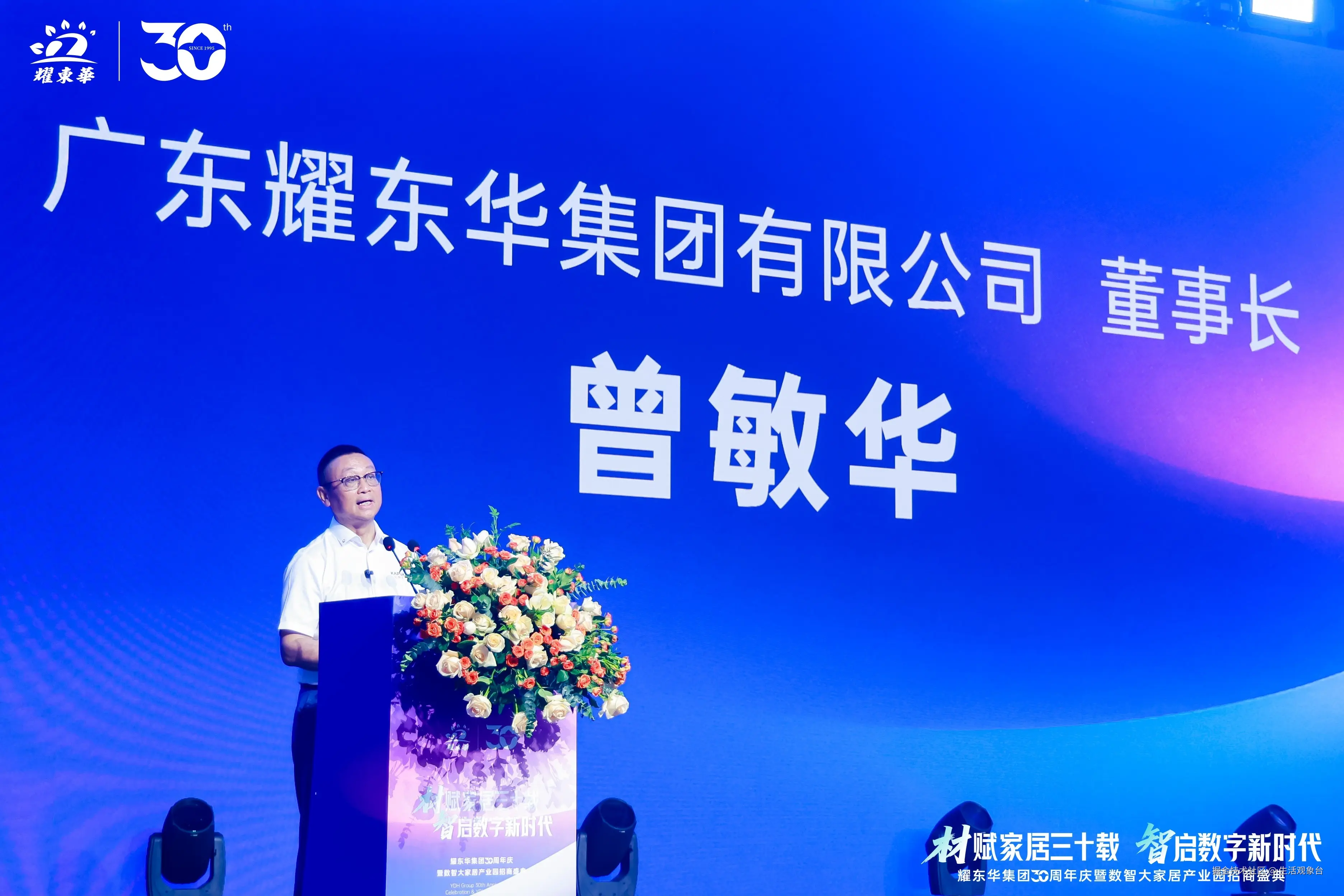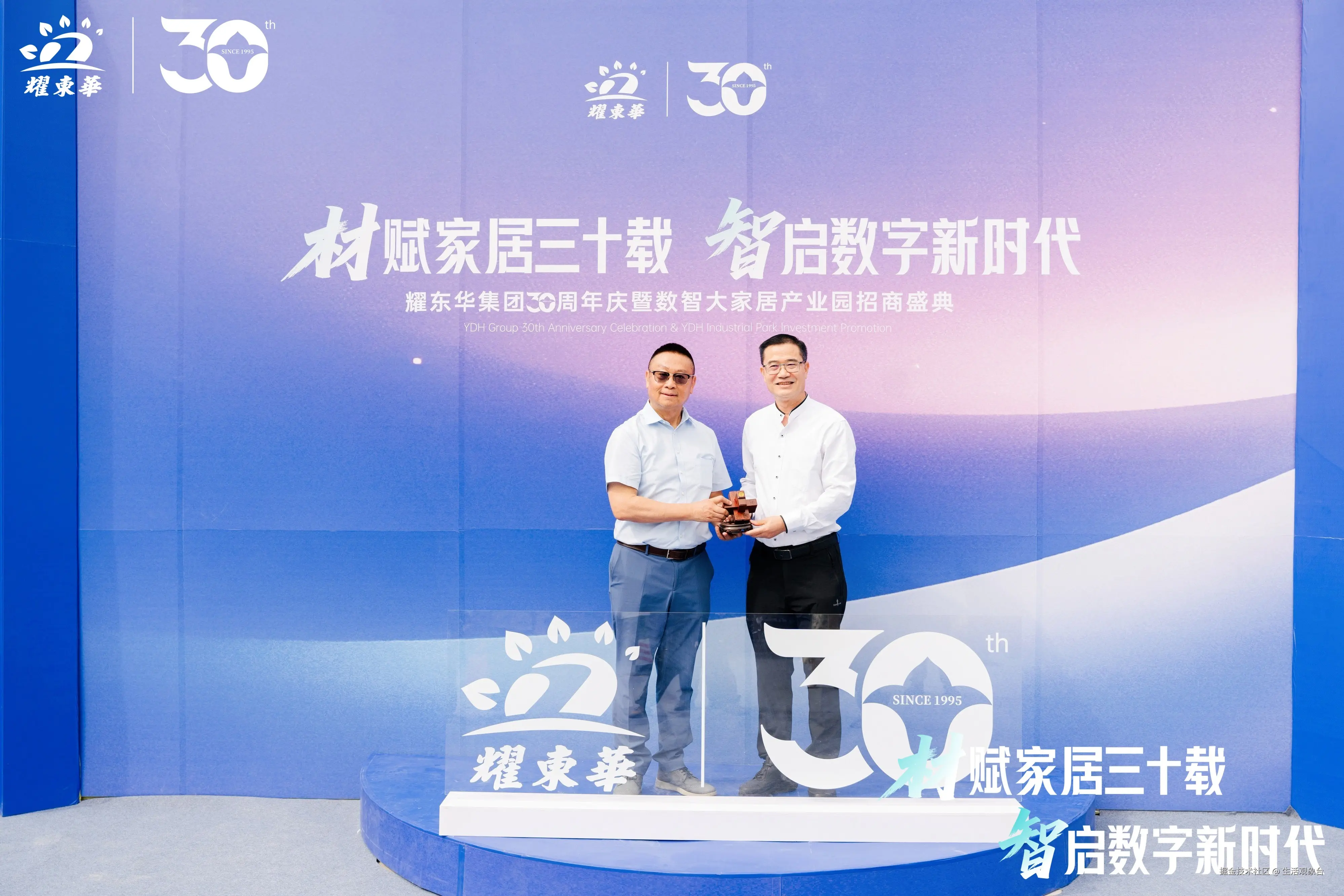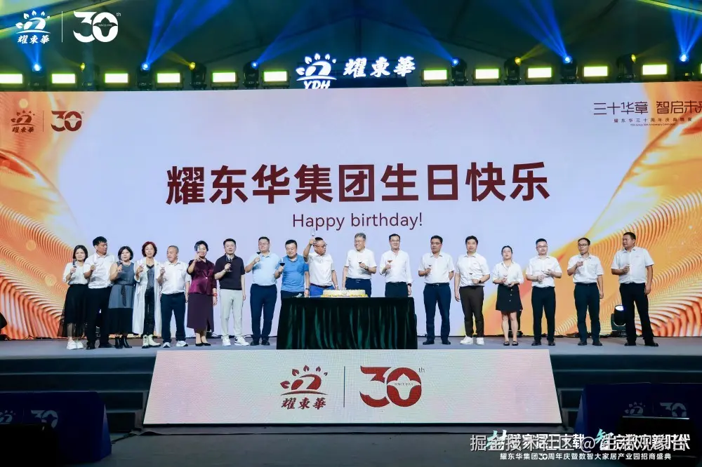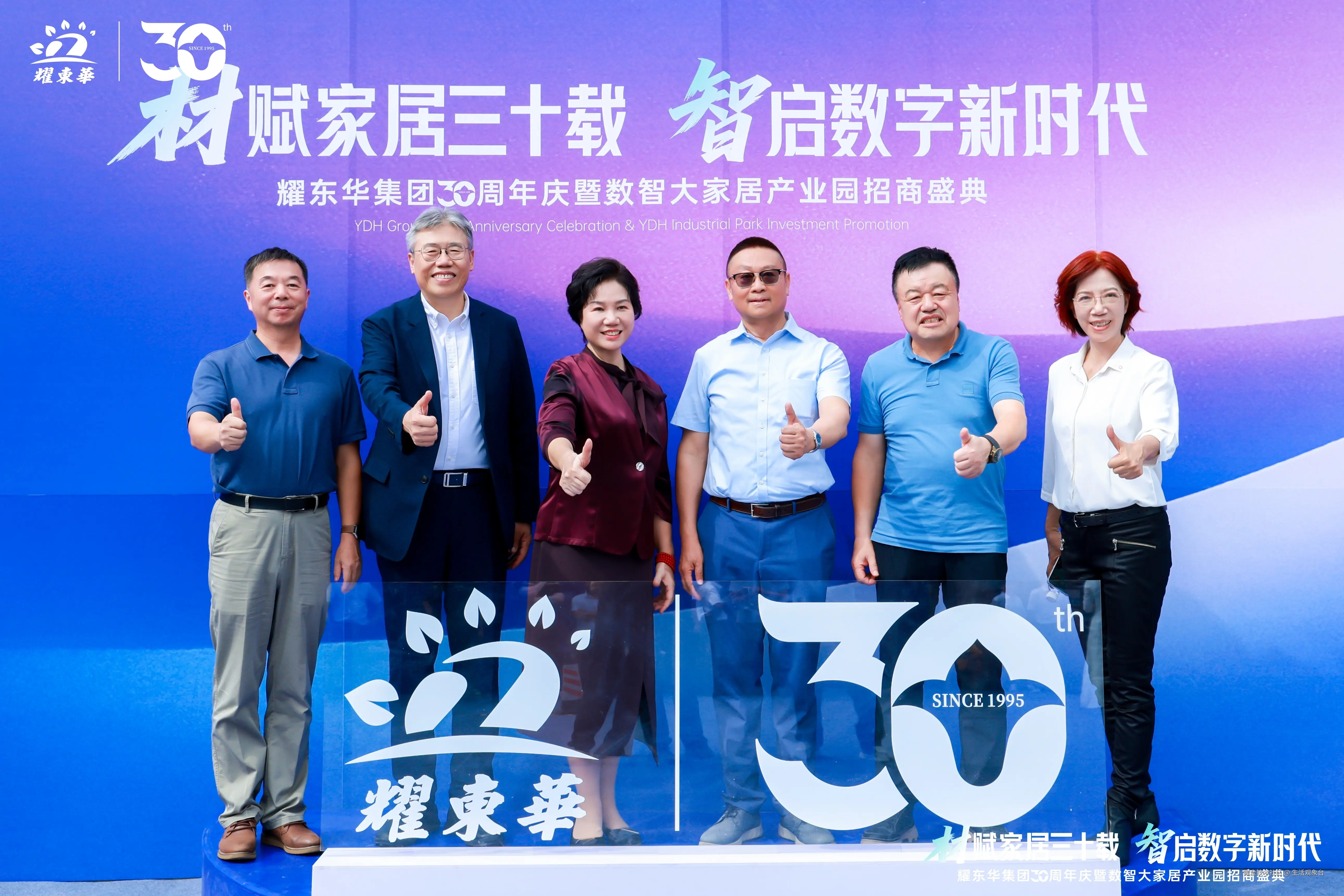 2025年9月28日,耀东华集团迎来创立三十周年的重要时刻。在耀东华科技产业园内,一场以“材赋家居三十载,智启数字新时代”为主题的庆典隆重举行。500余位嘉宾齐聚一堂,行业协会领导、海内外合作伙伴代表、高校产学研专家、全球供应链代表以及社会各界朋友,共同见证这一里程碑式的荣耀时刻。