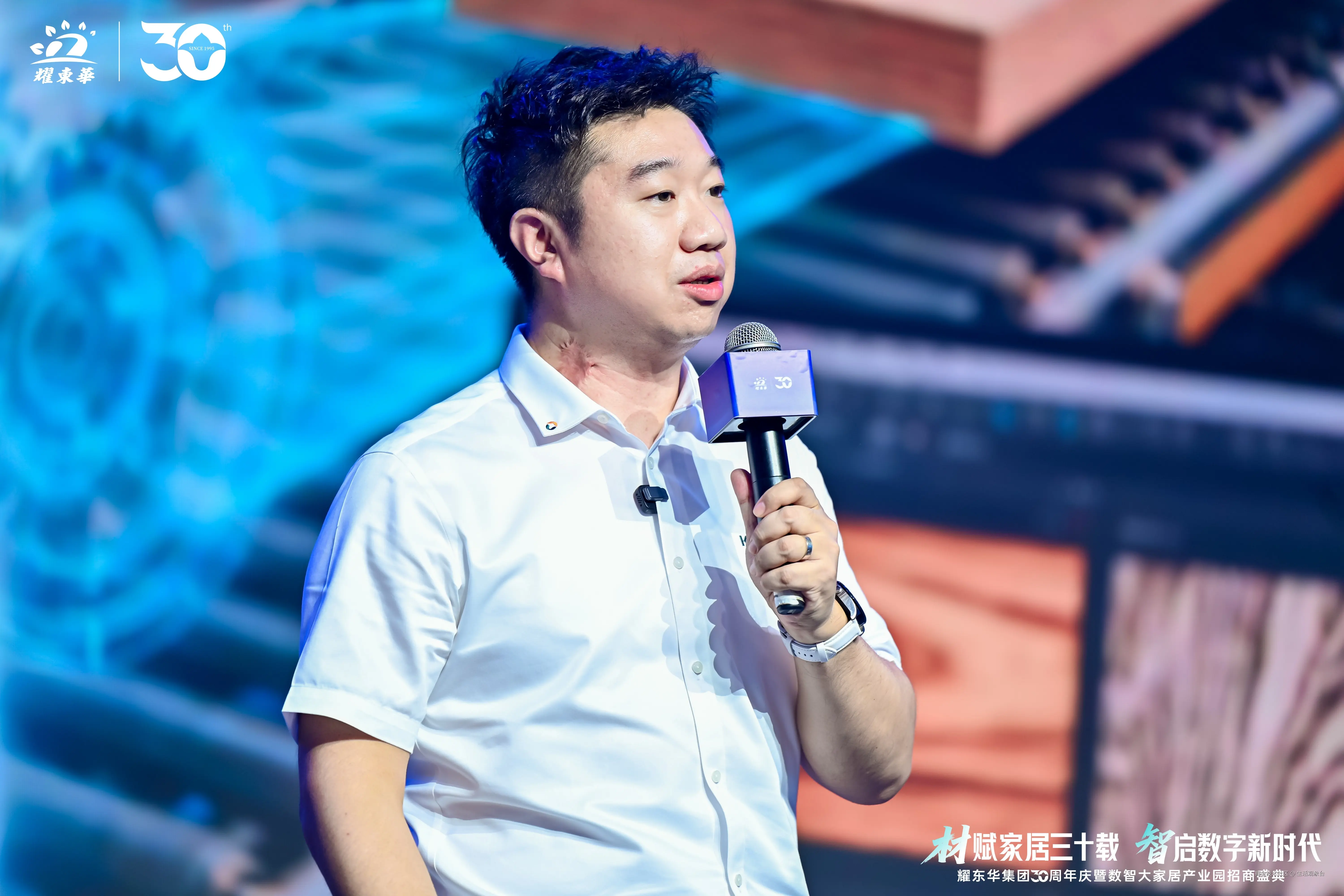 全国工商联家具装饰业商会党委常务副书记、秘书长张仁江先生致辞,他在致辞中提到“从专注饰面板生产到提供板式家具集成材料,再到如今积极运用互联网思维打造数字化大家居产业平台,耀东华的每一次转型升级都彰显出其非凡的战略远见与蓬勃的创新活力。”