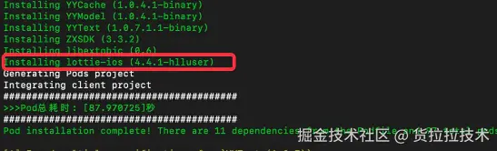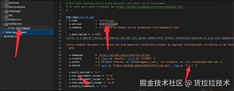 对于一些三方库,比如Lottie-ios这个库,源码是在github上,我们没有直接进行源码管理,可以考虑只将官方库的podspec文件下载下来,修改配置后,推到我们自己的Podspec私有仓库中,这里需要注意的是: