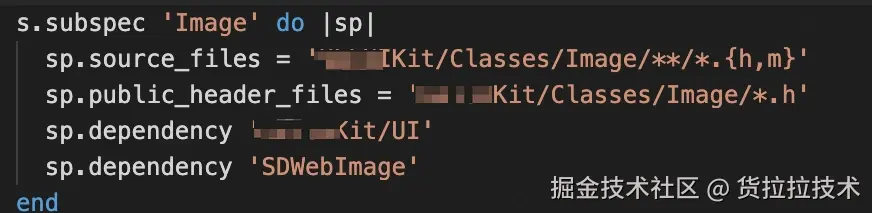 动态库按需依赖,尽量将动态库按照需求拆分成多个子模块,能够支持接入方进行按需依赖,避免全量引入影响包大小, 通过建立subspec子模块进行导出,如下