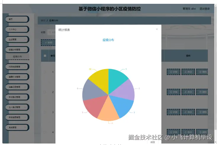 系统实现阶段,我先开发后端接口,再做前端页面,最后联调测试。这里以 “业主健康打卡” 和 “管理员疫情分布管理” 两个核心功能为例,分享具体实现步骤。