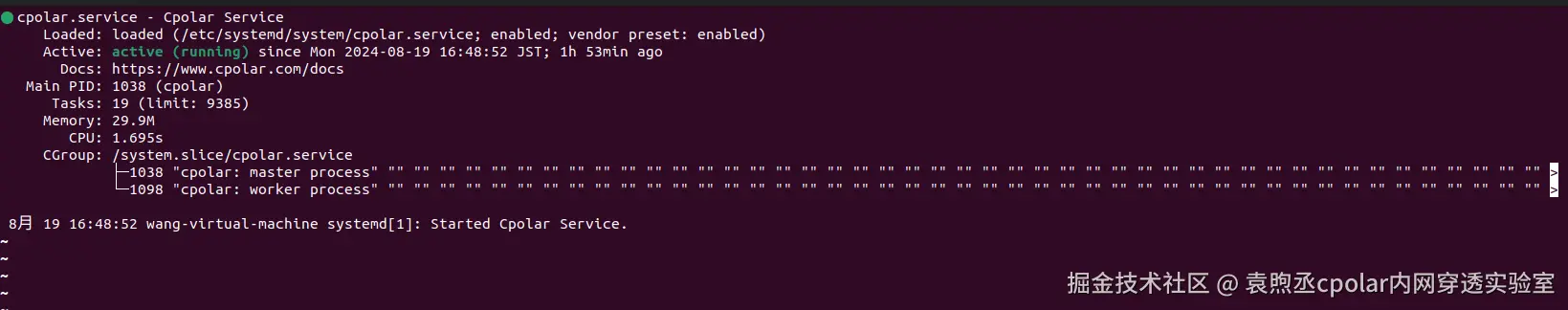 安装完成后,执行下方命令查看cpolar服务状态:(如图所示即为正常启动)