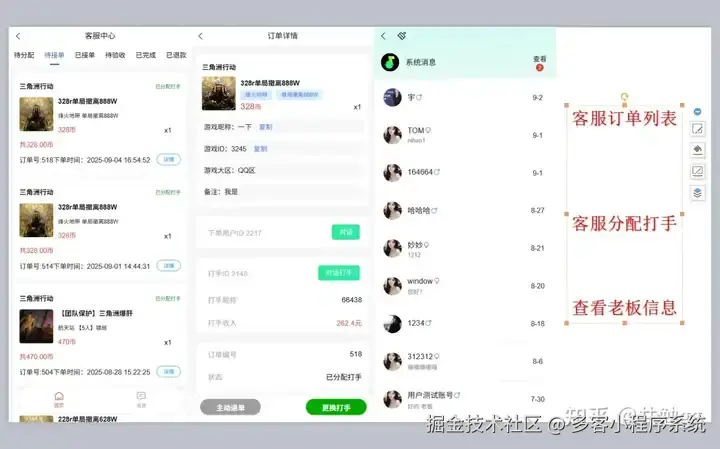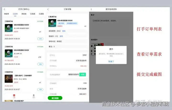 客服安排打手/陪玩-打手接单/抢单-建群服务-上传完成截图凭证-客服审核-结单