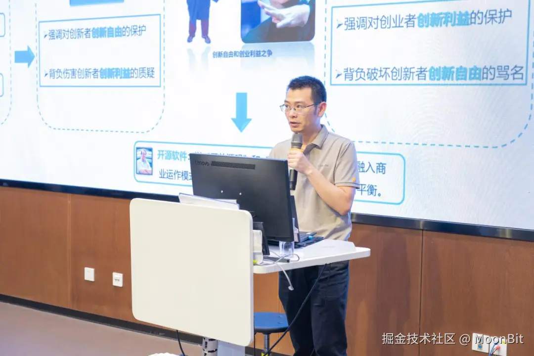 红山开源平台实施与运营机构负责人 何焱 主任、副研究员 唐艺 登台作深度分享。报告指出,开源是技术迭代加速、全球协作成本趋零、复杂系统创新需求爆发的必然结果;当前中国开源已进入新阶段,社区、项目、开发者数量高速扩张,为协同创新生态奠定基础。