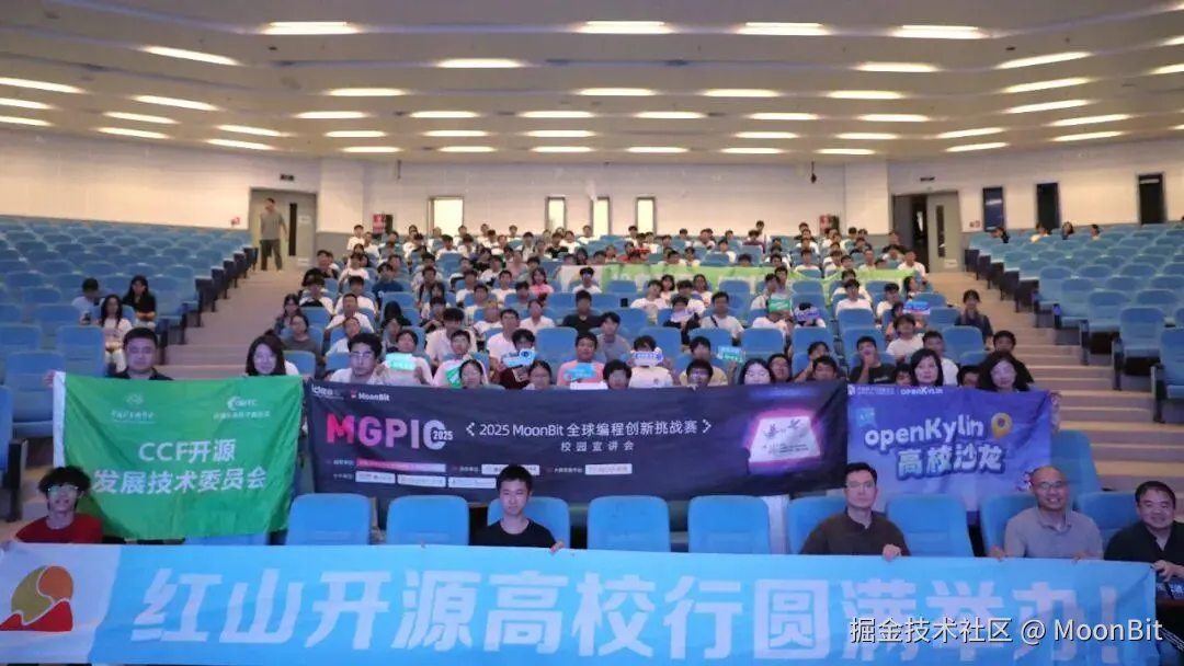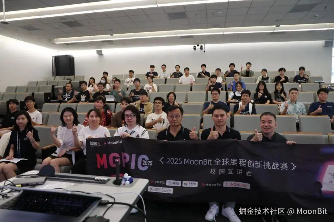 为推动 MoonBit 全球编程创新挑战赛(MGPIC) 深入高校、激发青年开发者的参赛热情和创新潜能,9 月 26 日至 29 日,MoonBit 携手 CCF 开源发展技术委员会、红山开源、openKylin、鹏城实验室与启元实验室 等多家知名机构,联合开启“开源高校行”系列活动。团队先后走进 中山大学(软件工程学院)、深圳大学、香港科技大学(广州) 等赛事合作院校,并在 深圳技术大学 举办校园分享与技术交流,让开源创新的火种在湾区高校持续传递。本次校园行以 MGPIC 大赛 为纽带,围绕 AI 与编程语言的融合创新、开源社区发展 展开交流,分享 MoonBit 在 AI 原生编程与工具链建设方面的最新进展,展示各个开源社区的优秀实践成果。活动吸引了三百余名师生参与,现场气氛热烈,激发了高校青年对开源与自主语言的兴趣与创意。通过与多家社区与高校的联合行动,MoonBit 希望让更多年轻人亲身体验 AI 原生编程的力量,加入 MGPIC 的创新舞台,共同探索新一代开发者的成长路径与人才培养新模式。