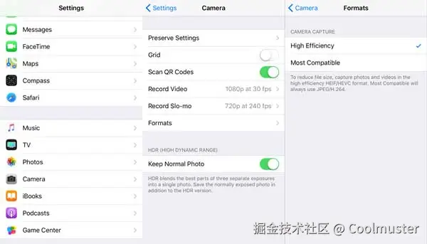 步骤3.选择“高效”以激活HEIC格式。