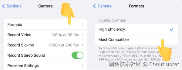 除了优化照片和视频存储空间外,您还可以在拍摄照片或视频时选择较低的图像格式(例如 HEIC)和分辨率,以减小文件大小。以下是如何在不删除照片/视频的情况下释放 iPhone 空间的方法: