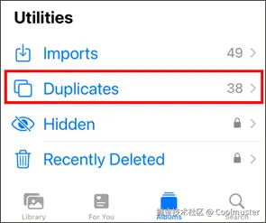 步骤3. 向下滚动直到找到“重复”相册,然后点击打开它。(如何在iPhone上删除重复的照片?)