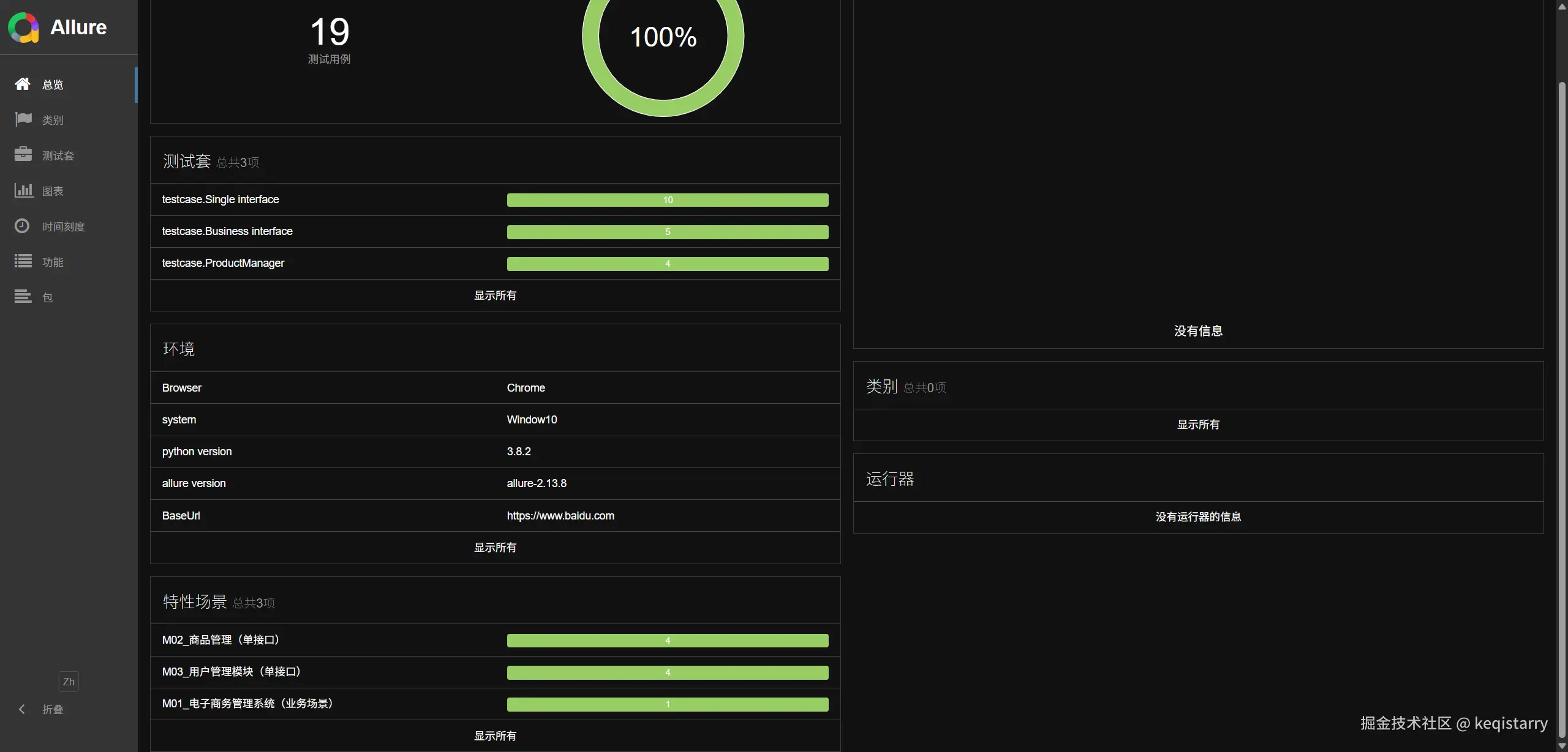 - 报告集成:与Allure报告深度集成,提供详细的测试信息