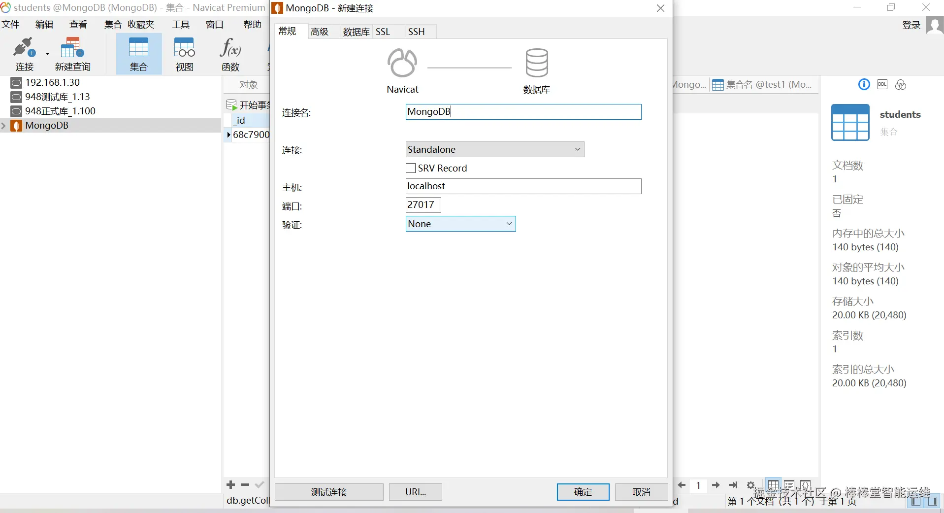 // 连接MongoDB服务器