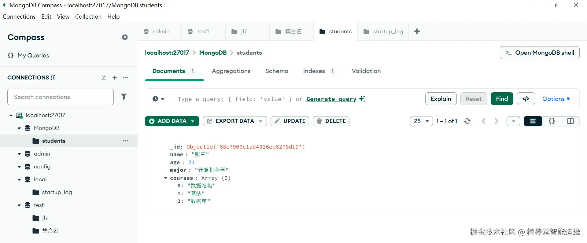 图6-7-1-1使用MongoDB Compass检索数据