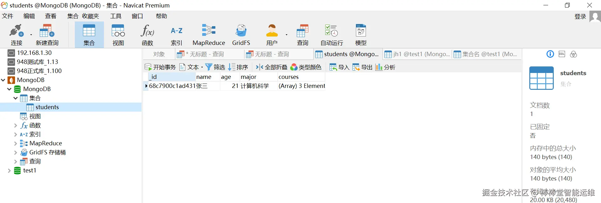 1、使用Java操作MongoDB数据库。