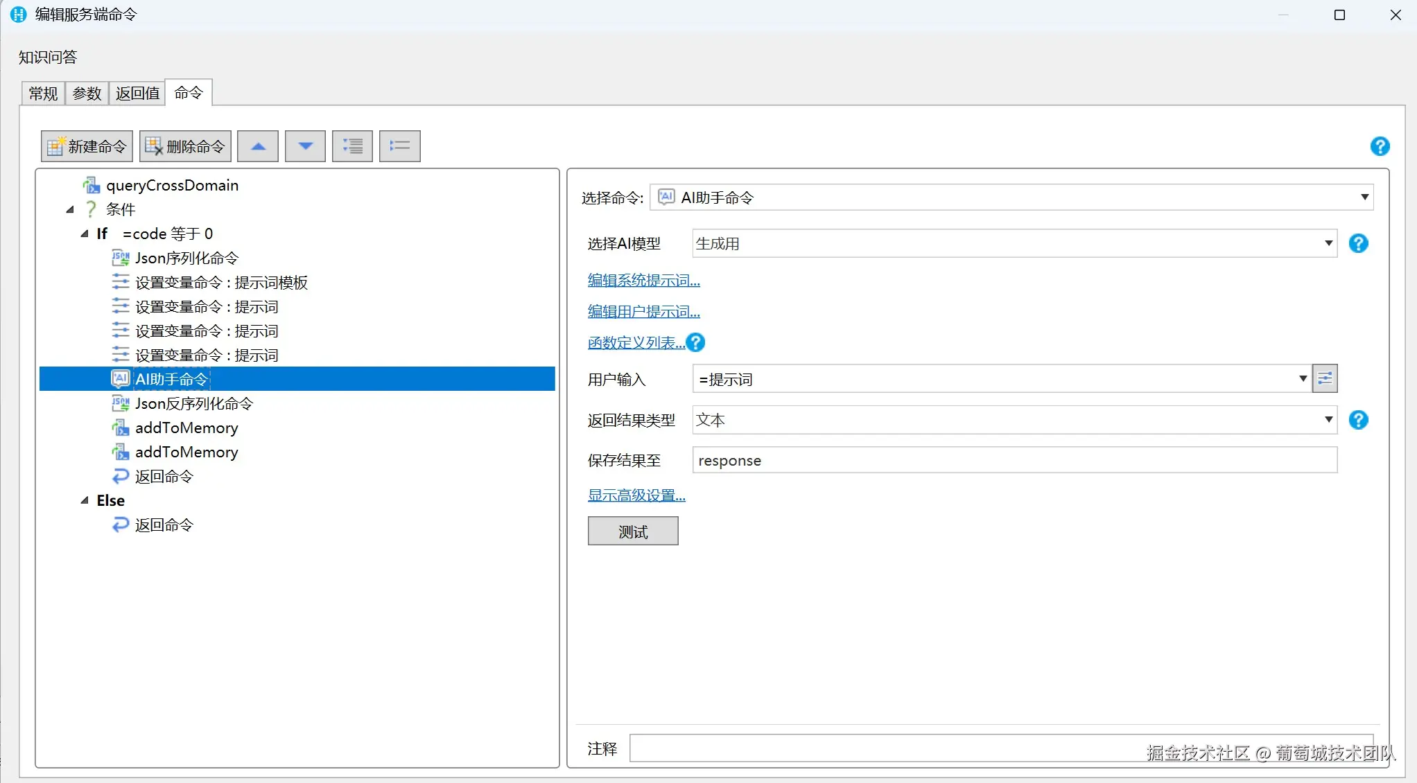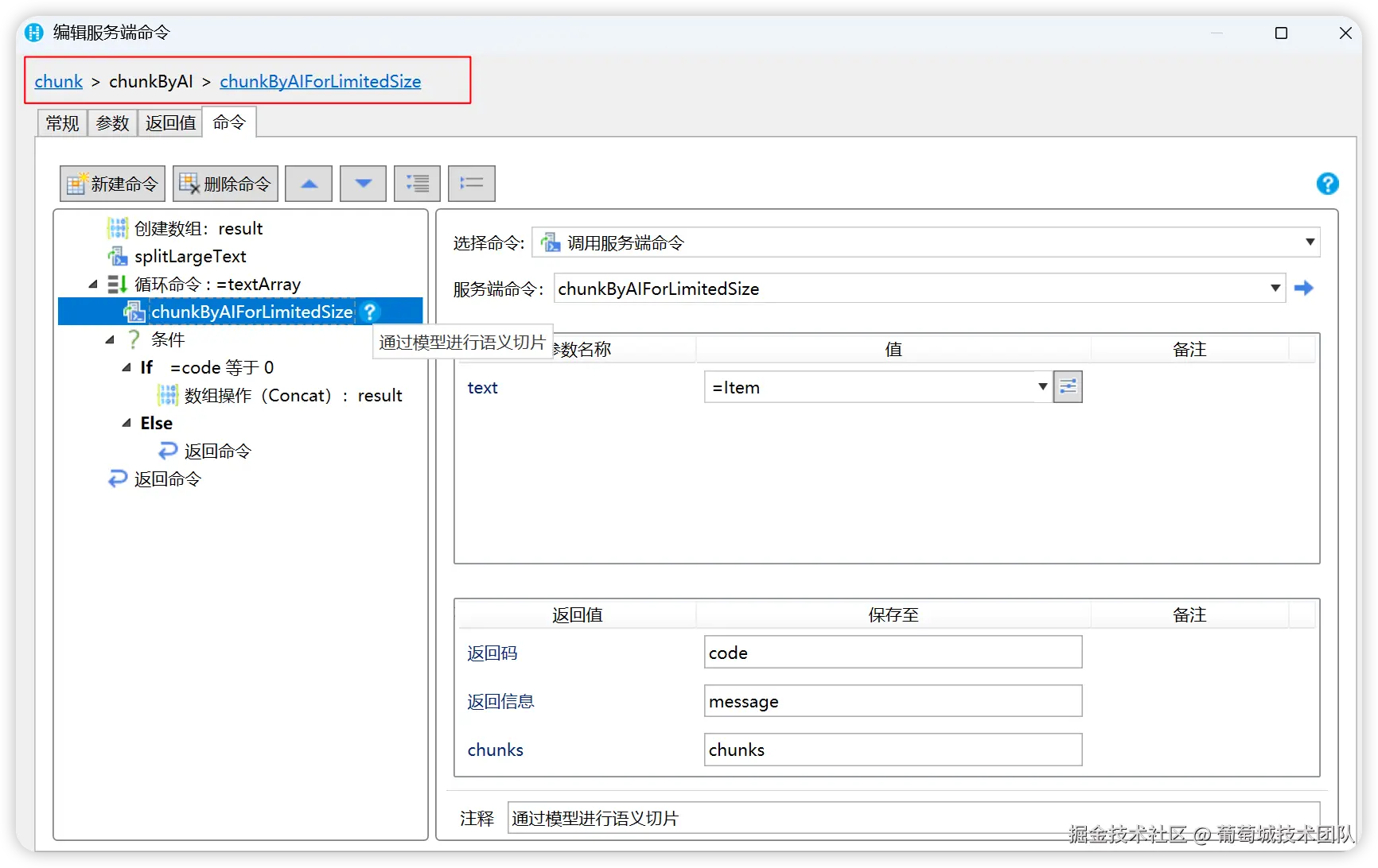 RAG 所有的实现逻辑均维护在活字格的「逻辑 服务端命令」中。