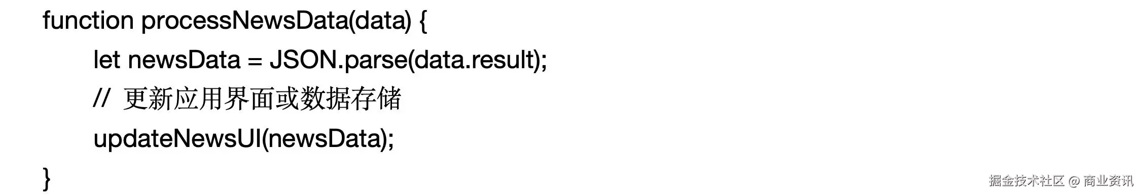 ·解析获取到的新闻数据,并将其存储在应用的数据模型中。例如,对于 JSON 格式的新闻数据,可以使用 JavaScript 的 JSON.parse() 方法进行解析: