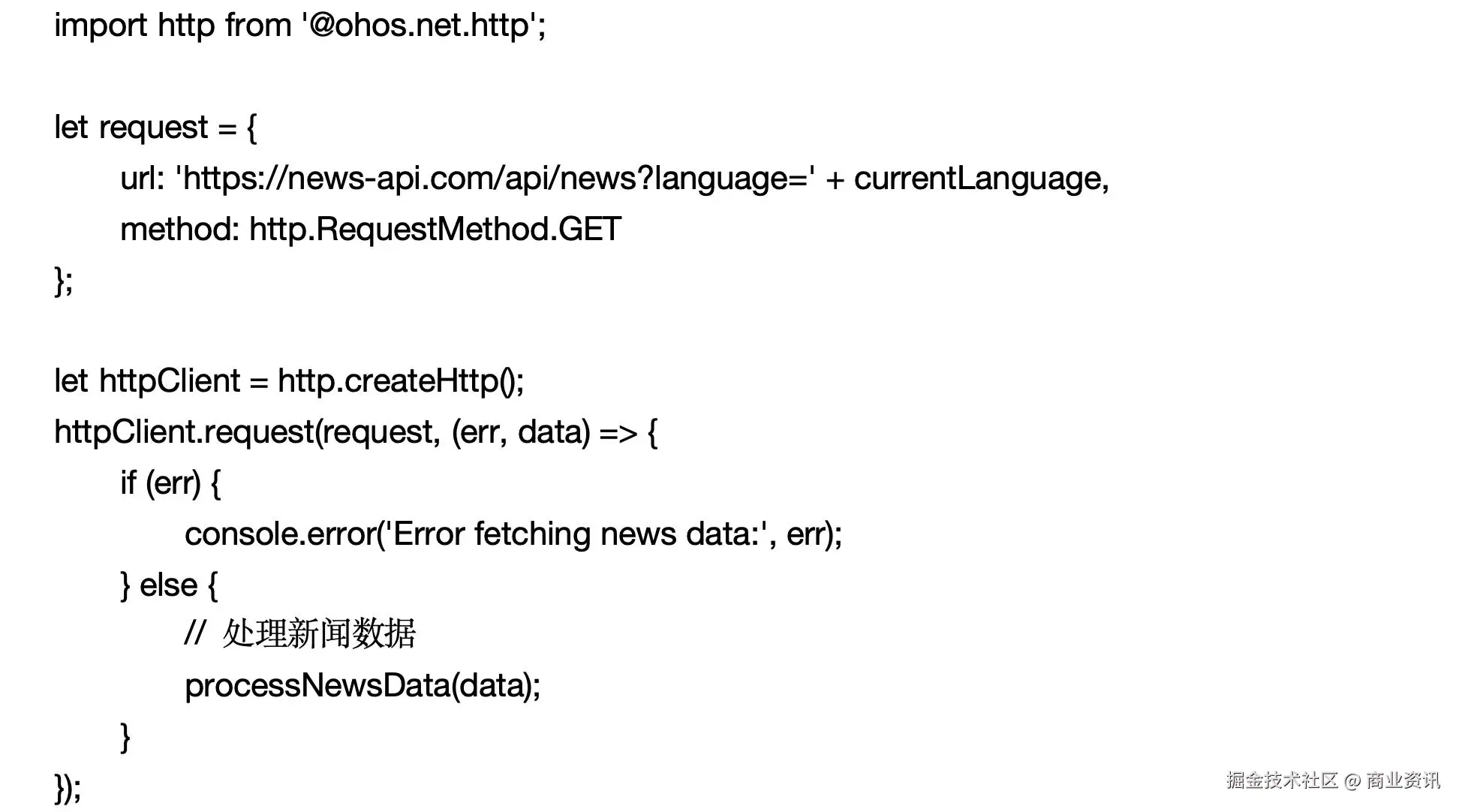 ·使用鸿蒙系统提供的网络 API 发送 HTTP 请求,获取不同语言的新闻数据。例如: