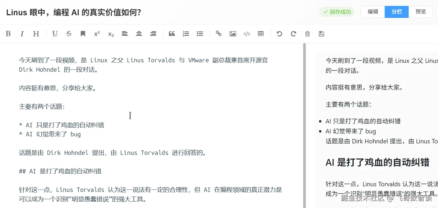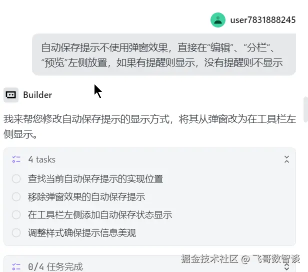 自动保存提示不使用弹窗效果,直接在“编辑”、“分栏“、“预览”左侧放置,如果有提醒则显示,没有提醒则不显示