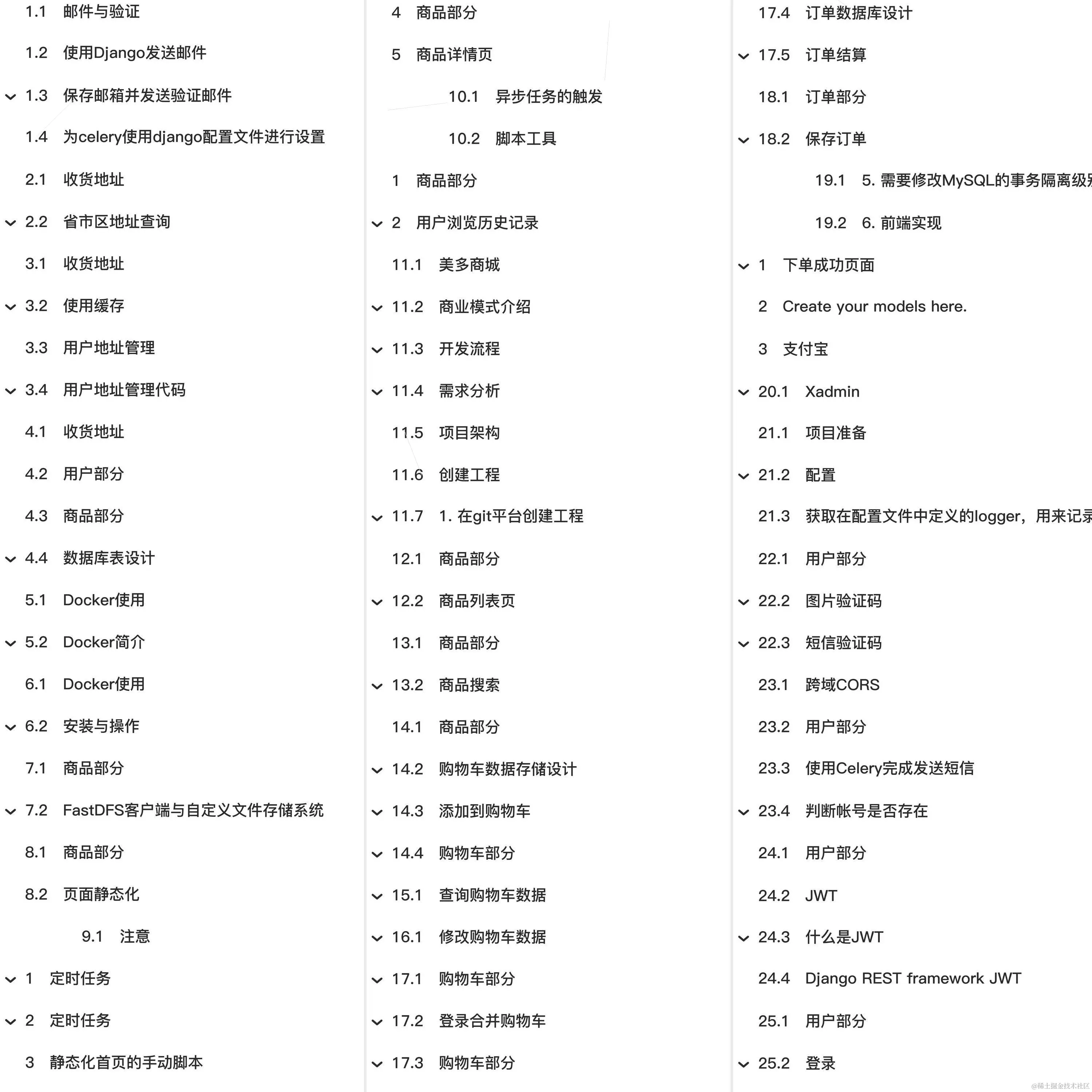 🏆🏆🏆教程全知识点简介:1.邮件验证系统包括Django发送邮件、保存邮箱并发送验证邮件、Celery使用Django配置文件设置。2. 地址管理涵盖shou货地址、省市区地址查询、数据库建表、后端接口设计、前端实现、缓存使用(安装、使用方法、省市区视图缓存、缓存数据保存位置和有效期设置)、用户地址管理。3. 数据库设计包括用户部分、产品部分、数据库表设计、表结构、数据库模型类。4. 容器化部署涵盖Docker使用(Ubuntu安装、启动停止、镜像操作)、FastDFS客户端与自定义文件存储系统、页面静态化、定时任务、静态化首页脚本。5. 产品系统包括产品详情页、异步任务触发、脚本工具、用户浏览历史记录(保存、查看)。6. 产品模式涵盖B2B企业对企业、C2C个人对个人、O2O线上到线下、开发流程、需求分析。7. 购wu车系统包括购wu车管理、购wu车数据存储设计(Redis保存已登录用户)、添加到购wu车、查询购wu车数据、登录合并购wu车。8. 订order单系统涵盖提交订order单、我的订order单、订order单评价、订order单结算、保存订order单、MySQL事务隔离级别修改、下单成功页面。9. 搜索系统包括产品搜索、搜索引擎原理、Elasticsearch、Docker安装Elasticsearch扩展、前端实现。10. 支fu系统涉及 集成、Xadmin管理后台。11. 项目配置包括项目准备、配置文件修改、数据库配置、Redis配置、本地化语言时区、异常处理、日志记录。12. 用户认证系统涵盖图片验证码、域名设置、前端Vue代码、跨域CORS、Celery发送短信、账号存在判断、JWT认证(JWT概念、构成、应用、Django REST framework JWT)、 登录(登录流程、模型类创建、urllib使用、回调处理)、用户中心个人信息。