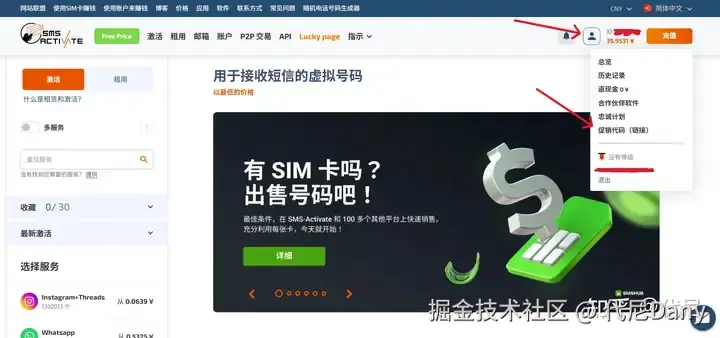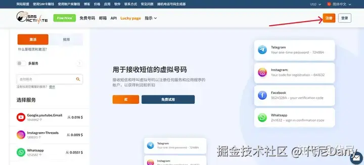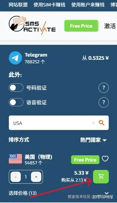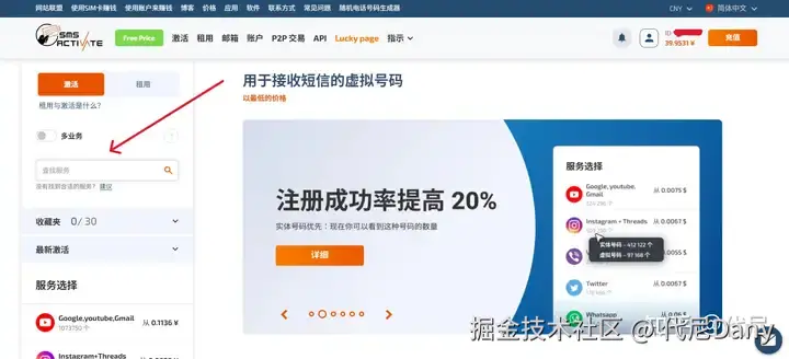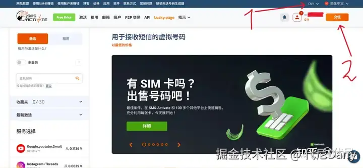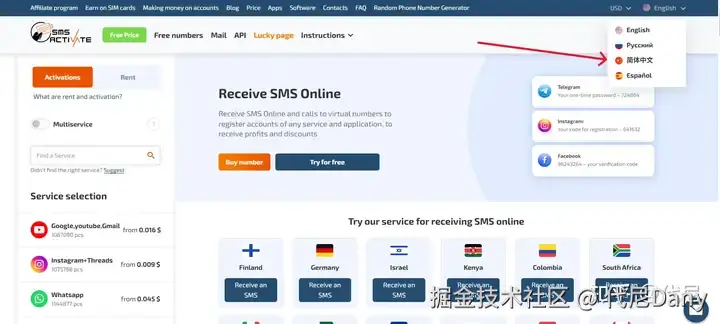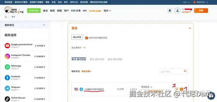 然后你会自动被跳转到 SMS-Activate 网站