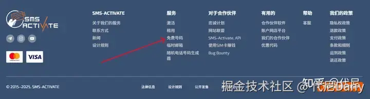 如果你先要测试 SMS-Activate 平台,可以使用免费号码。网站底部有相关的部分