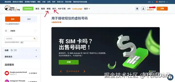 注册 SMS-Activate 账户