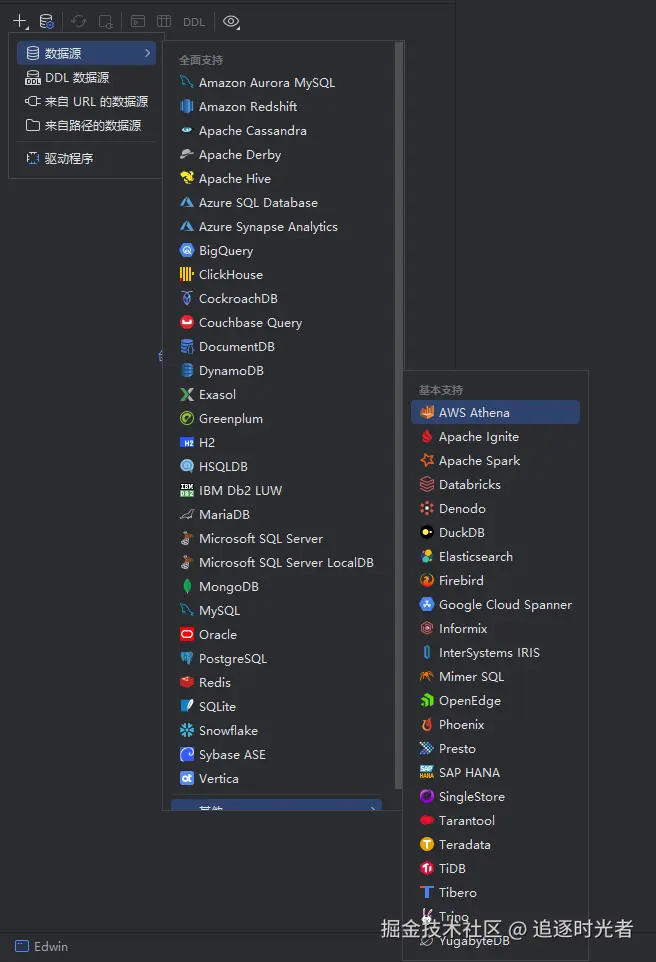 DataGrip 支持广泛的数据库系统,涵盖主流的关系型数据库和部分 NoSQL 数据库: