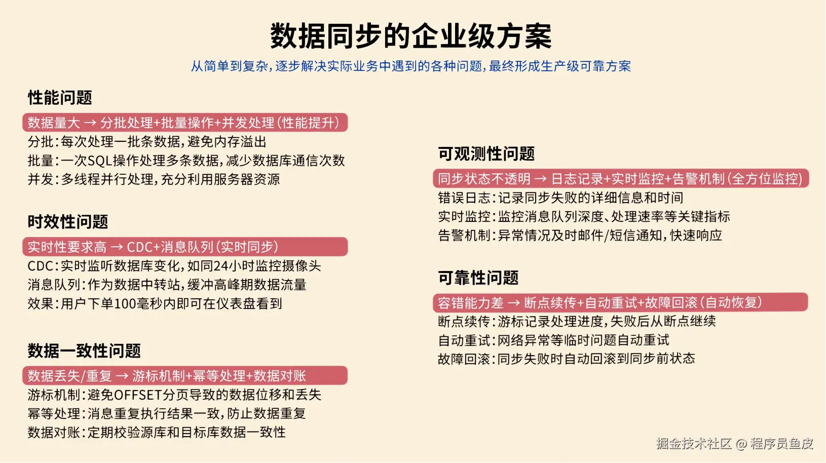 阿坤甚至一脸嫌弃地看着你:“不是哥们,连数据对账都不做么?你自己都不定期检查同步前后的数据是否一致么?我这有份数据同步的企业级方案,你好好看看吧。”