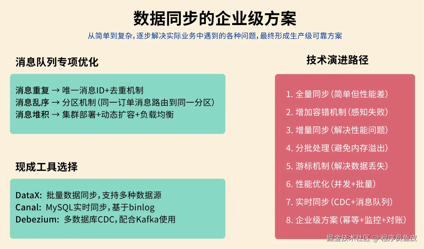 阿坤看着你的代码接着说:“不是哥,做个数据同步要这么麻烦么?DataX、Canal、Debezium,这么多现成的企业级数据同步工具你不用?非要自己写代码?”
