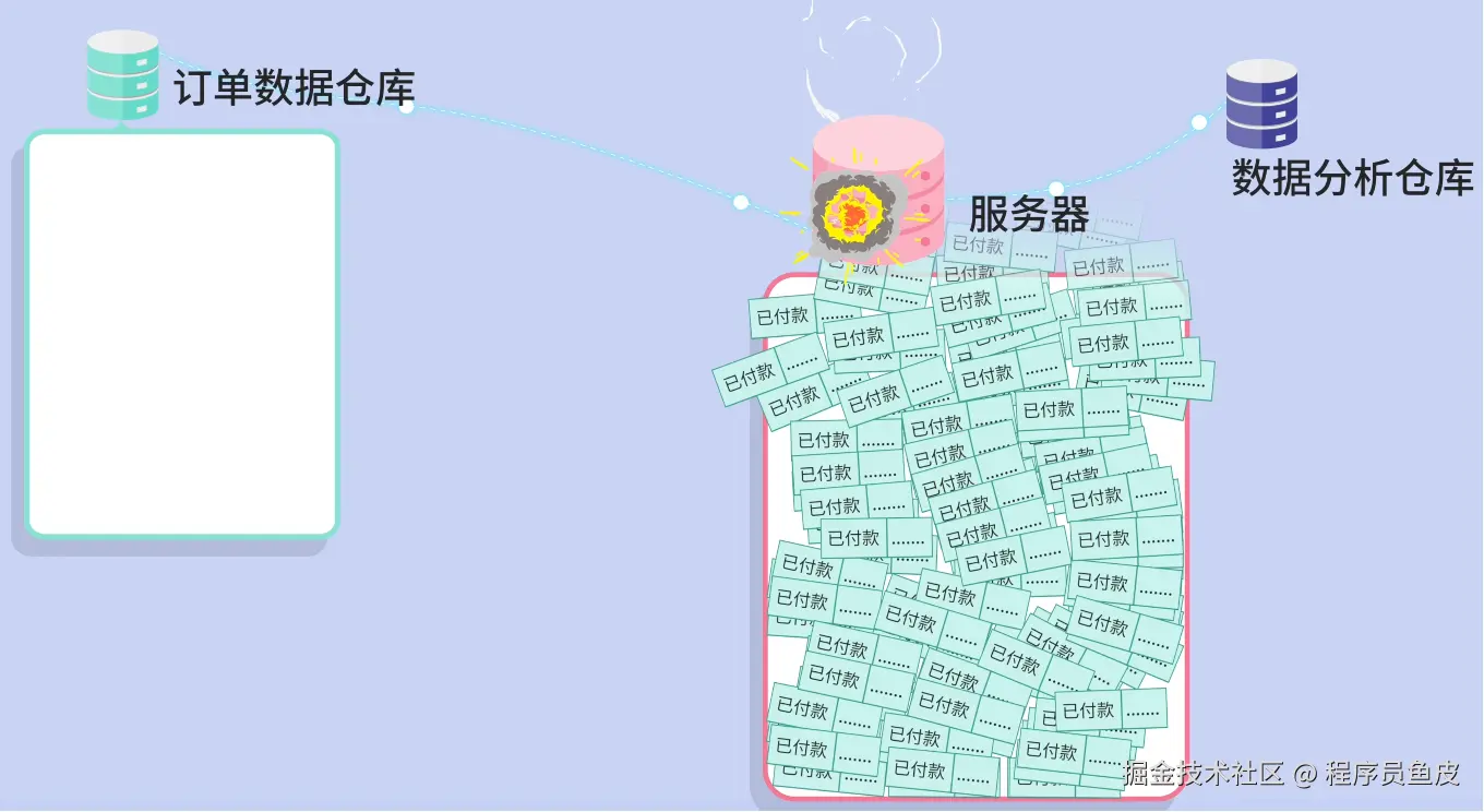 你正在和新来的实习生阿坤吹牛皮,没想到瞬间产生了大量订单,像洪水一般,让你的实时同步系统出现了各种异常: