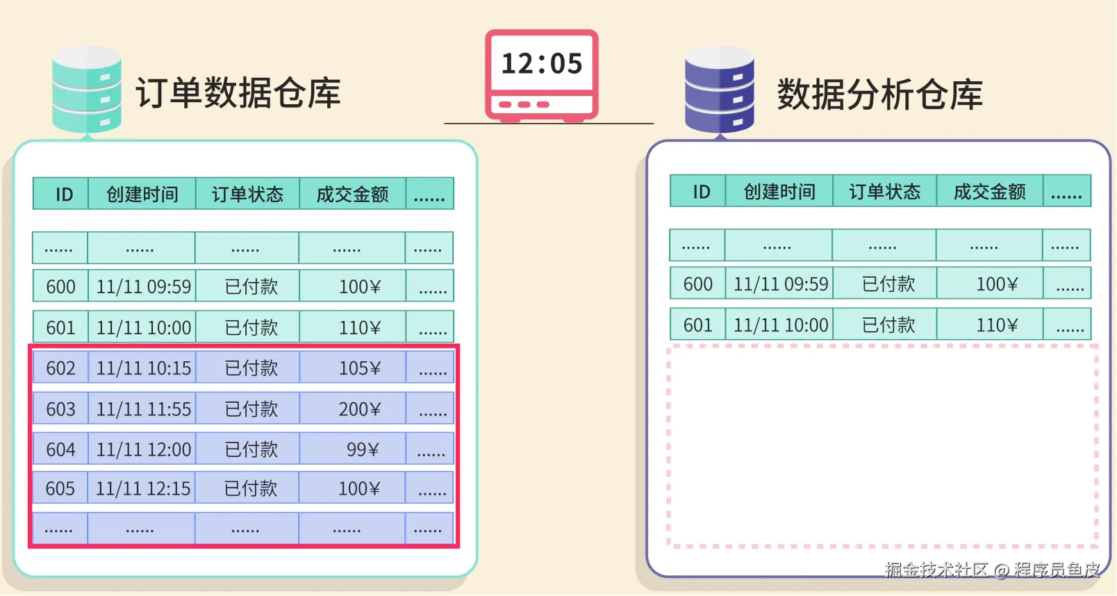 你心想:这还不简单吗?我写个定时任务,每天 把整个订单表的数据 全部查出来,然后 一股脑插入 到数据仓库!