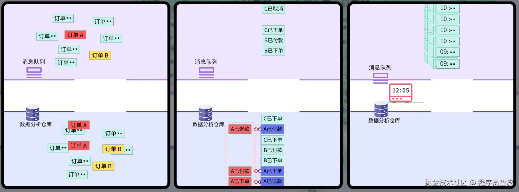 实现了这套方案之后,用户只要一下单,100 毫秒内老板就能在仪表盘上看到。而且保险起见,你还给消息队列加了个监控,如果消息堆积太多,就会自动告警。