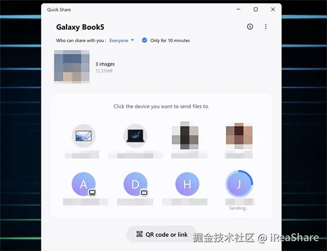 在 Windows 电脑上,请确保已安装“快速共享”应用。在 Android 手机上,请从 “快速设置”面板启用“快速共享”设置。