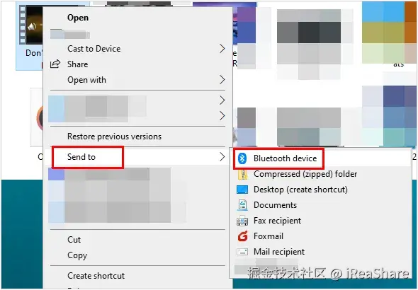 在电脑上,右键单击要发送的文件。转到“发送到”,然后选择“蓝牙设备”。