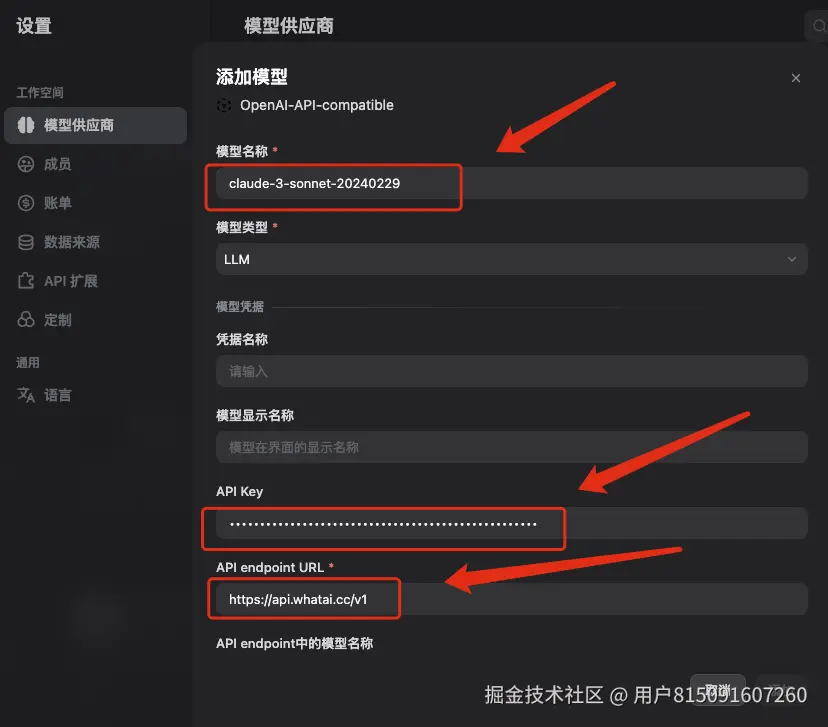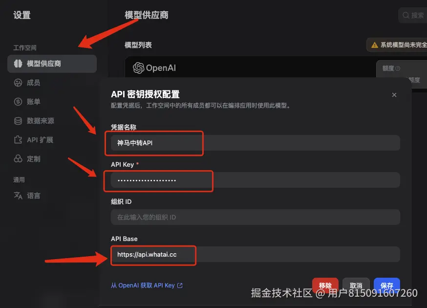 在Dify中配置OpenAI:
