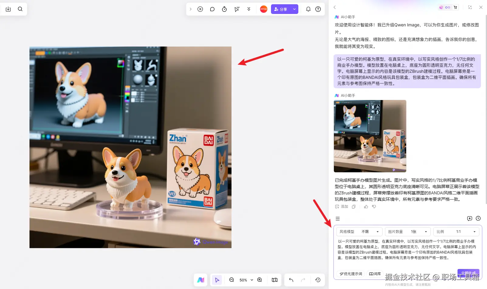 看到这里,如果你也想尝试使用Qwen-image模型生成手办模型图片,不妨打开boardmix AI绘图智能体,在线亲自体验一下~毕竟网上看千遍,不如亲自用一遍。