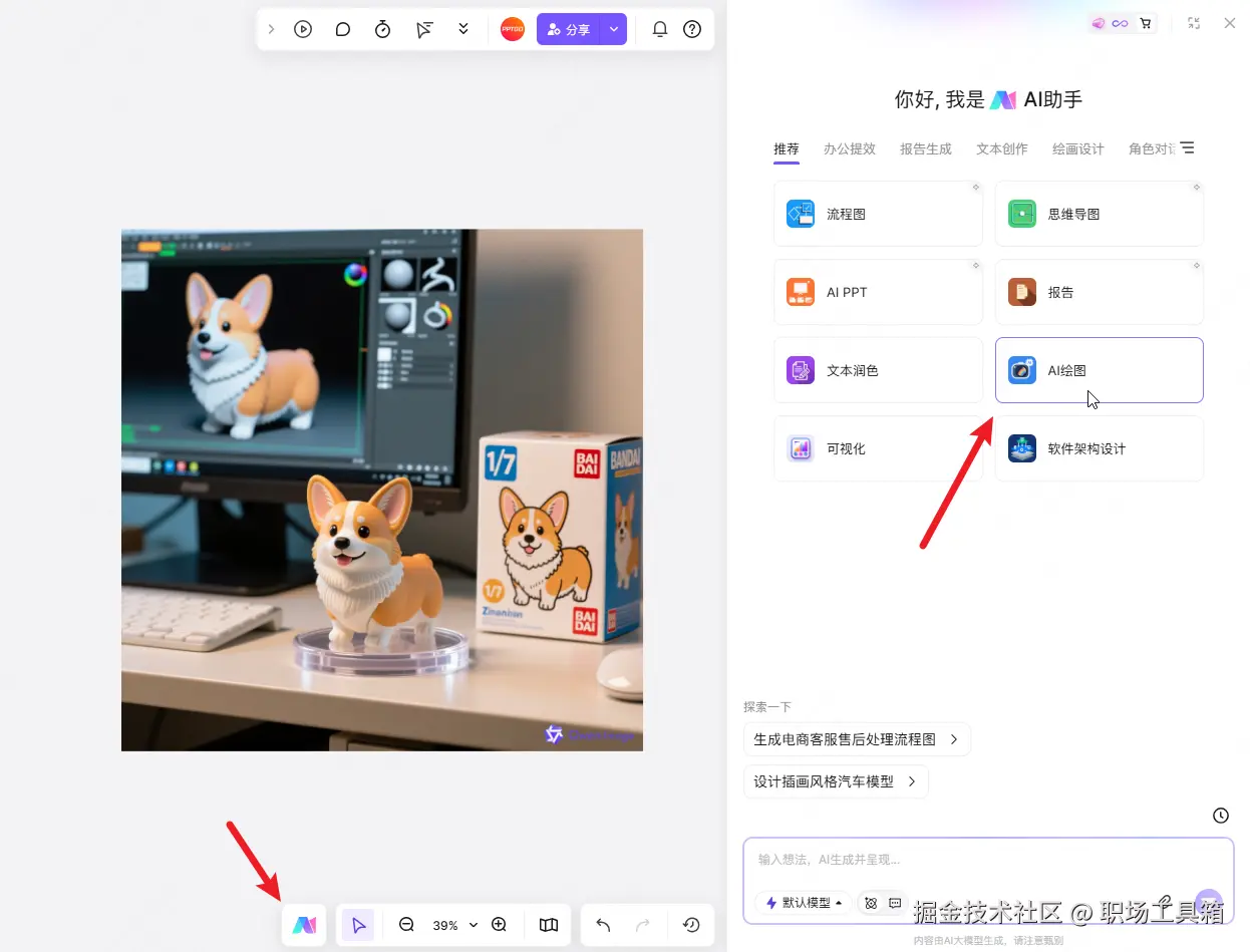 下面为大家详细介绍,如何使用nano banana中文版——boardmix AI 绘图智能体生成3D手办模型图片: