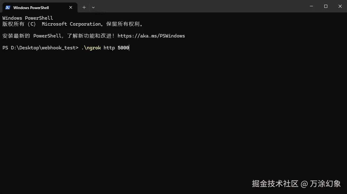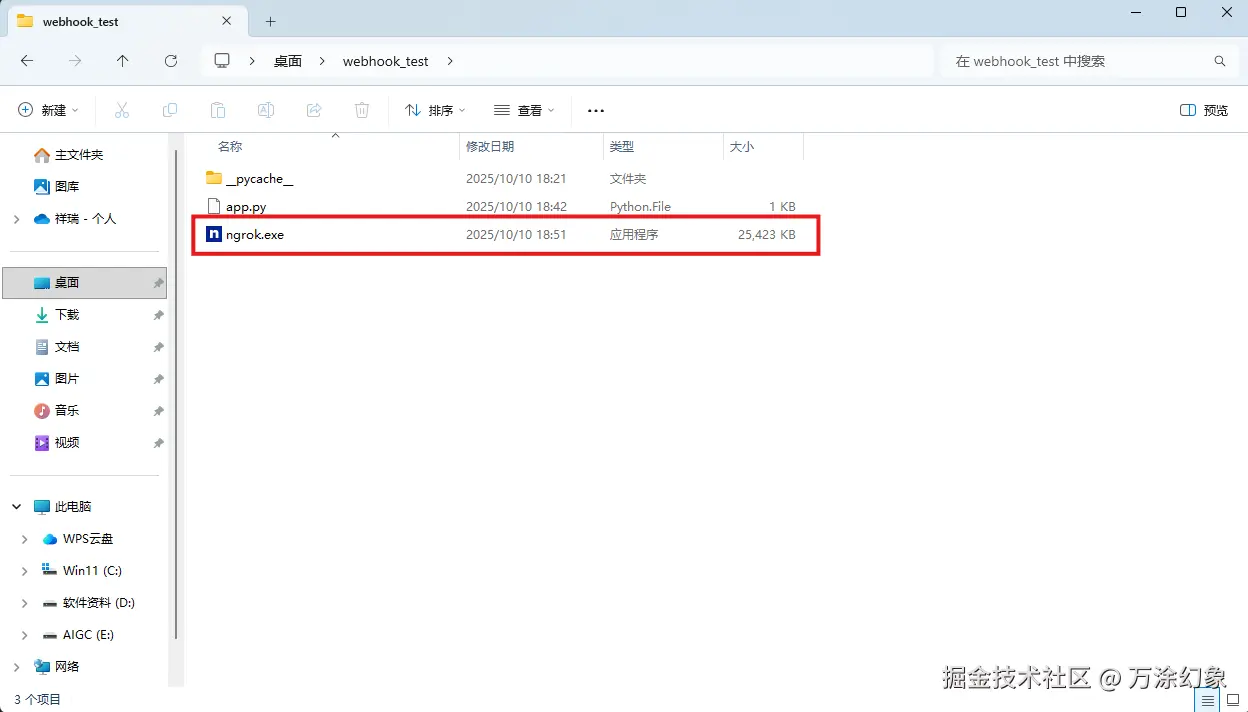 webhook_test文件夹(因为我们把ngrok.exe复制进来了)。 -