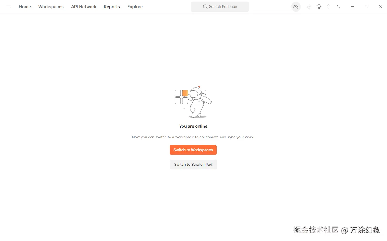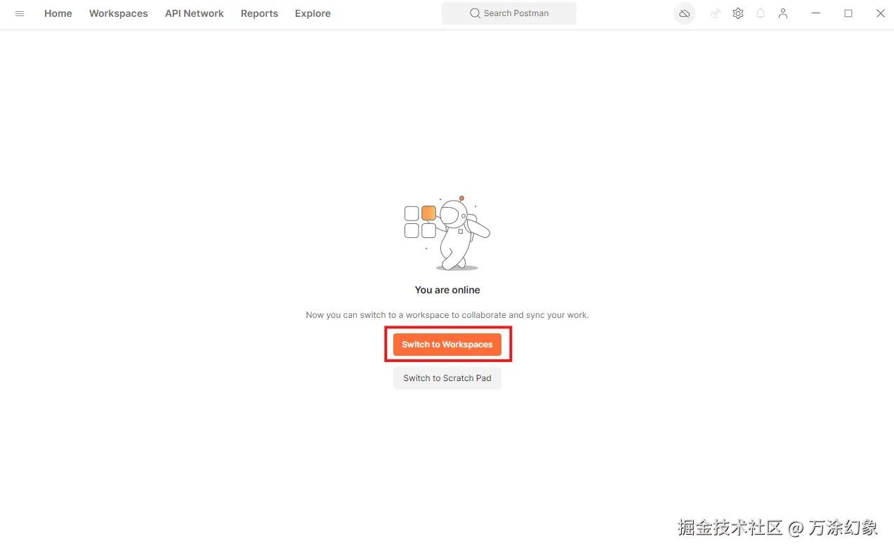 - 关键提醒:如果是第一次打开,请点击橙色的 **“**Switch to Workspaces” 按钮进入主界面。