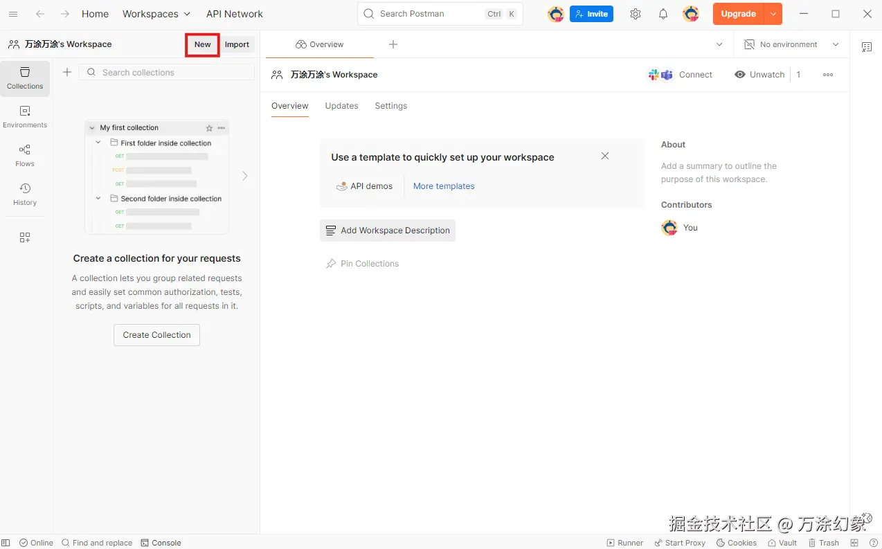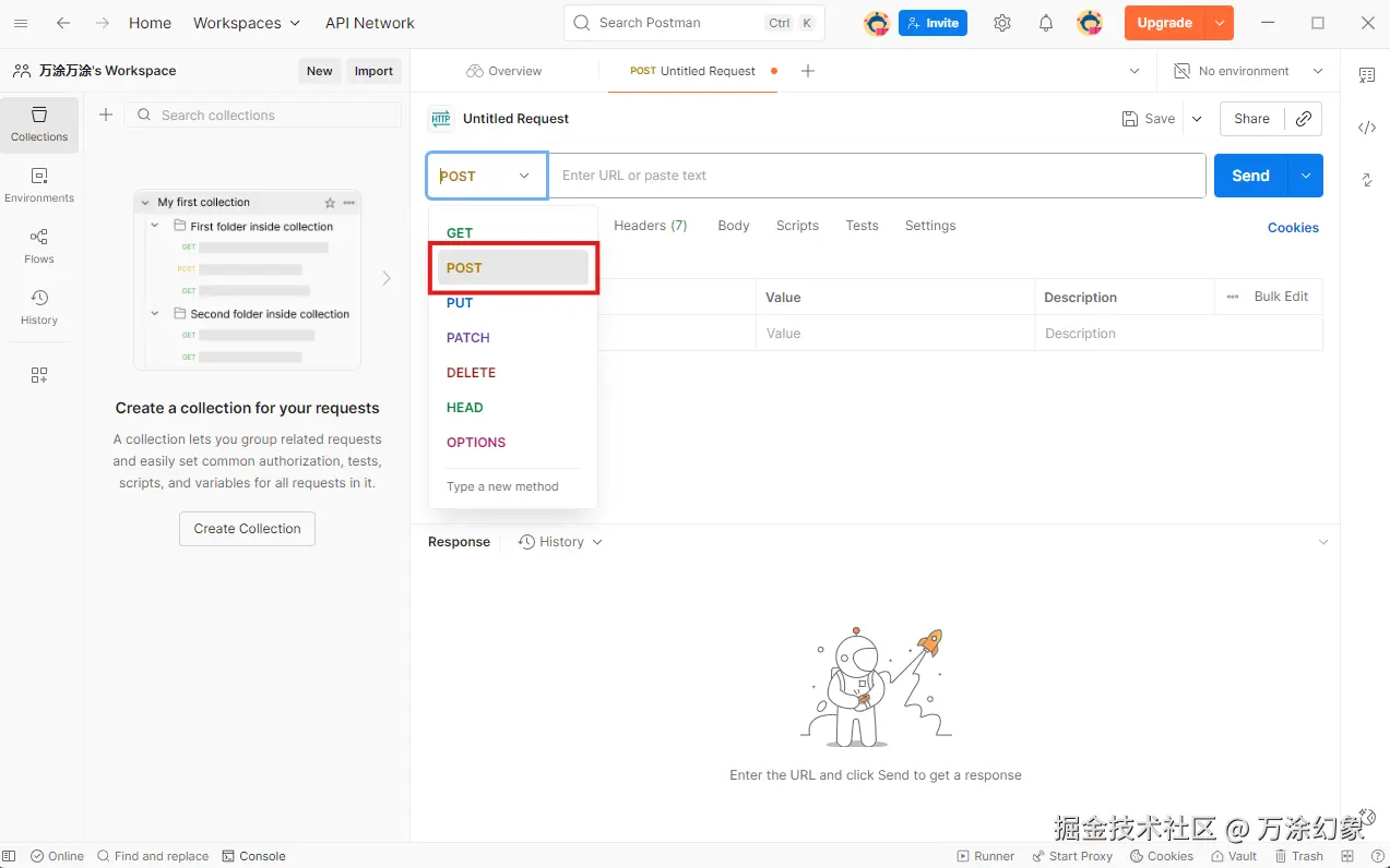 打开 Postman,新建一个