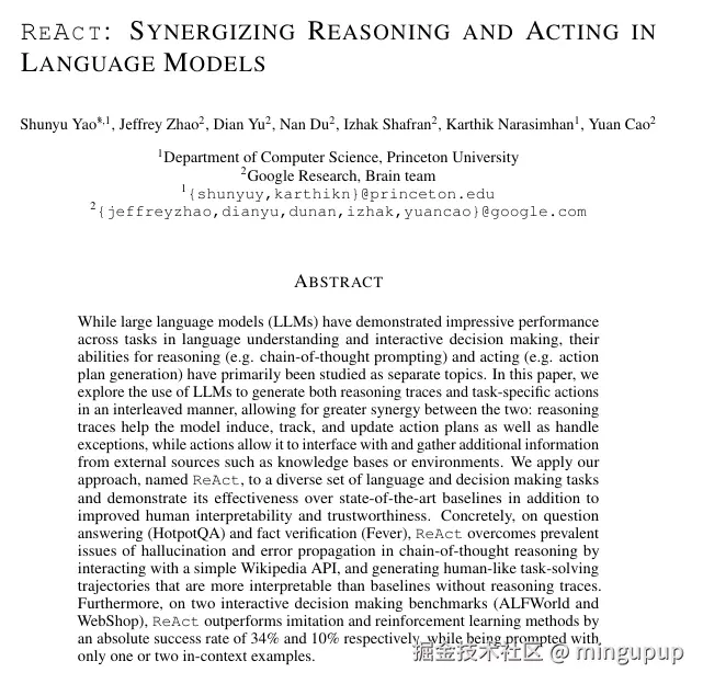 ReAct这个概念出自《REACT : SYNERGIZING REASONING AND ACTING IN LANGUAGE MODELS》这篇很牛的论文。