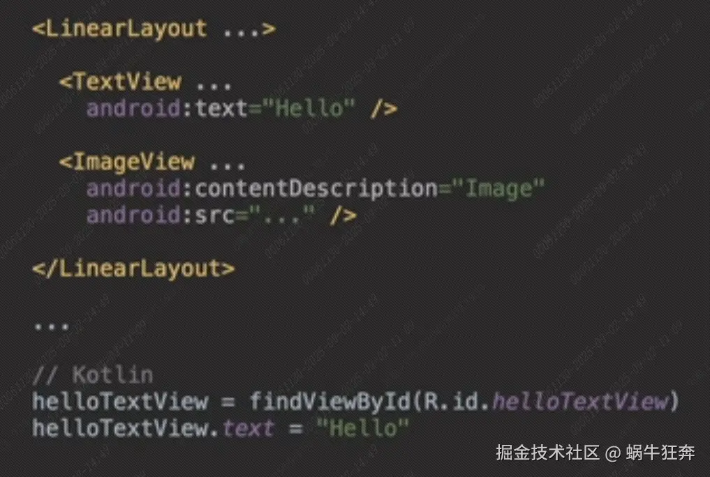 val xmlTv = xmlRootView.findViewById<TextView>(R.id.xml_tv_title)