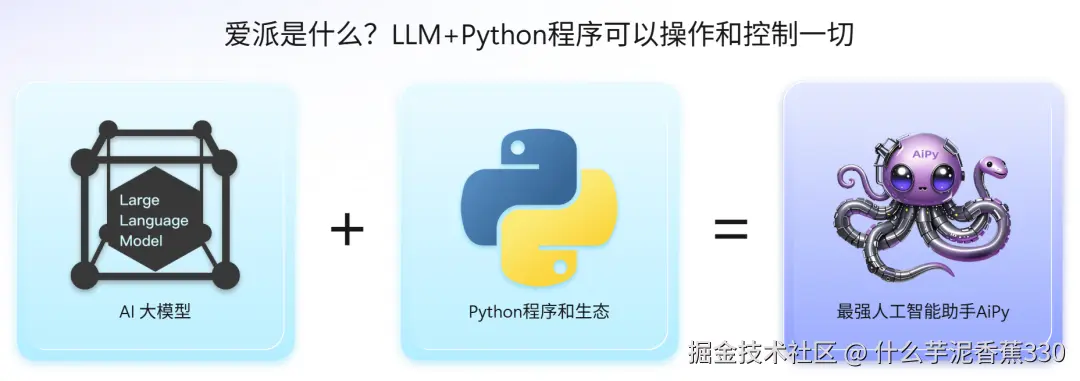 LLM 相当于是“大脑”,AiPy 为 LLM 接上“手脚”,即为它提供了完整的 Python 执行环境,让它可以生成并执行 Python 代码。