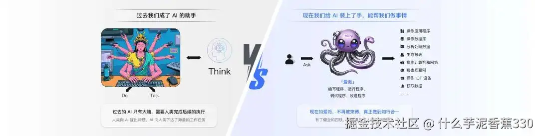 所以我们也常能看到有人吐槽:比起 AI 为人类服务,现在反倒更像是我们成了 AI 的助手。它负责“think”,我们负责“do”。