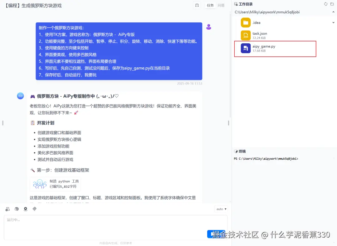 比如让它做一个经典的俄罗斯方块小游戏。