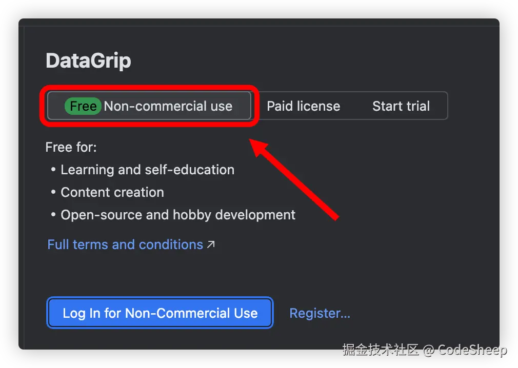 再具体一点,那非商业用途的免费版 DataGrip 如何申请和使用呢?