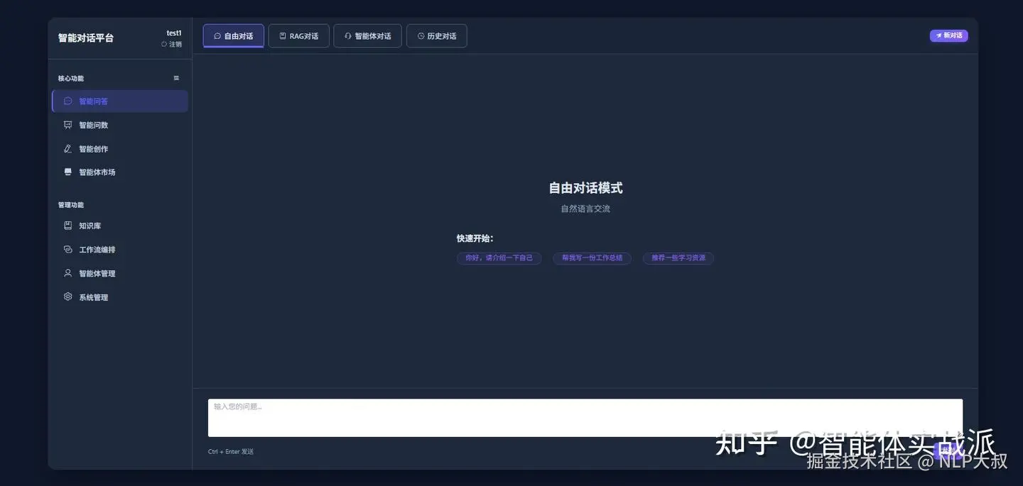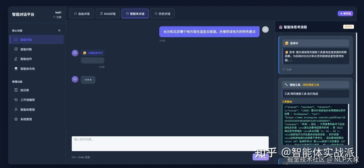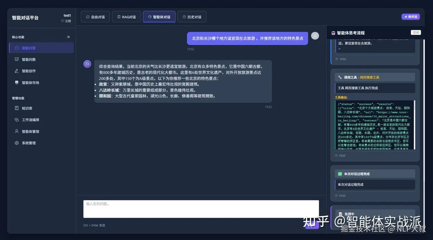 - 智能体对话:智能体自动规划协作处理复杂任务
