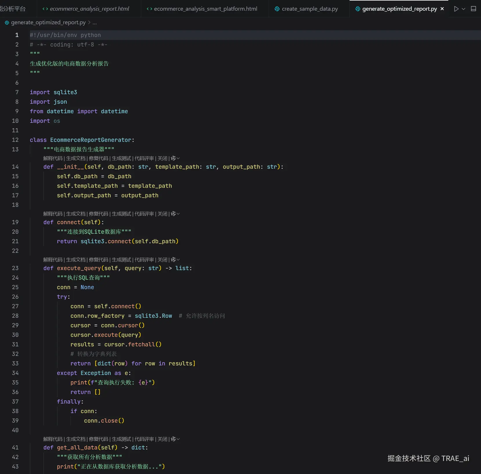 最核心的部分是报告生成系统。在 TRAE 的帮助下,我创建了 generate_optimized_report.py 脚本,负责从数据库获取数据并生成可视化报告: