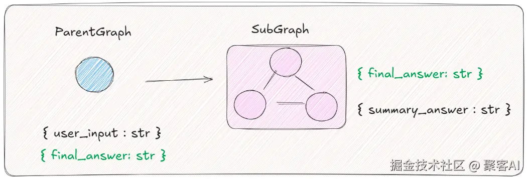- 定义状态:父图状态(ParentState)和子图状态(SubgraphState)通过final_answer键共享数据。
