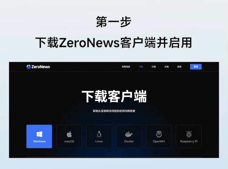 1. 下载客户端:访问 ZeroNews 官网,下载对应你系统(Windows, macOS, Linux, 群晖DSM等)的客户端。
